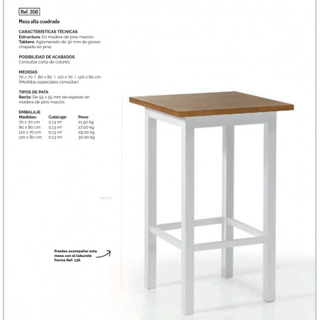 TAL MESA ALTA CUADRADA 350